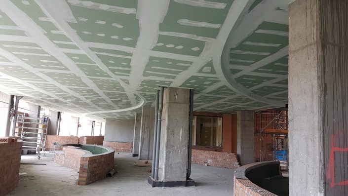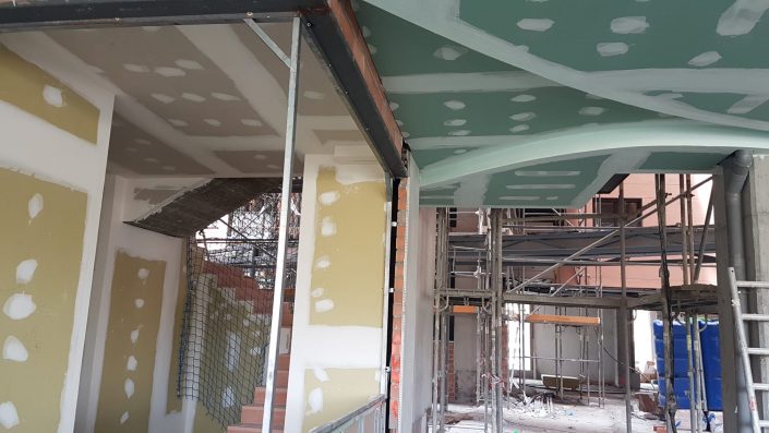 Tabiquería, trasdosados, techos continuos y registrables.